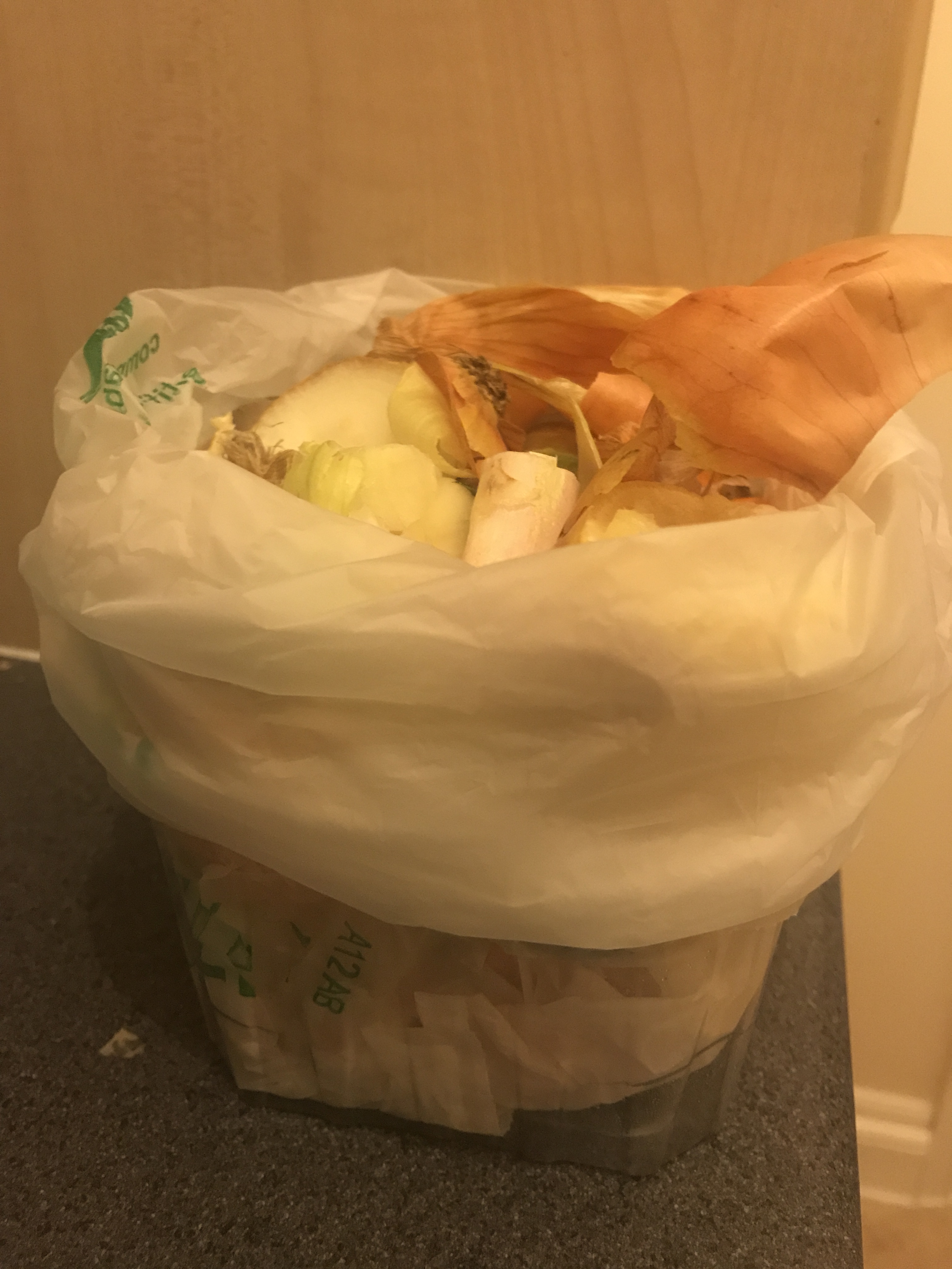 The easiest way to dispose of food waste is using your local council collection. You can check if food waste collection is available on your local council website or type your postcode here. Read your local instructions on how to handle this type of waste. Usually, you can request a caddy and caddy liners from the council. If the caddy provided is too big or inconvenient for you, you can collect in a smaller container close to the sink or a discrete under counter bin before final disposal. I prefer to use a small plastic container with caddy liners so I can easily collect waste while peeling fruits and vegetables over it. I reuse plastic packaging to do this.